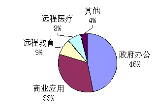 視頻會(huì)議系統(tǒng)在我國(guó)開始發(fā)展的初期,政府部門及電信、金融、電力、鐵路等壟斷性行業(yè)的應(yīng)用占據(jù)了絕大部分的市場(chǎng)份額。近年來隨著電子政務(wù)工程的逐步推進(jìn),政府部門更加關(guān)注視頻會(huì)議系統(tǒng)建設(shè)。在經(jīng)濟(jì)發(fā)達(dá)地區(qū)(例如浙江、山東、廣東),視頻會(huì)議網(wǎng)已覆蓋到地市級(jí)城市,有的甚至覆蓋到縣一級(jí)。除各級(jí)政府之外,其它諸如檢察院、法院、公安和水利等職能部門也是視頻會(huì)議系統(tǒng)的重要用戶。賽迪網(wǎng)曾對(duì)視頻會(huì)議系統(tǒng)的應(yīng)用現(xiàn)狀做過調(diào)查,發(fā)現(xiàn)政府辦公占全部市場(chǎng)份額的46.6%,電信、金融、鐵路、電力等行業(yè)占據(jù)了33.2%的市場(chǎng)份額,而遠(yuǎn)程教育和遠(yuǎn)程醫(yī)療由于尚處于發(fā)展初期,所占份額分別是8.7%和7.9%。