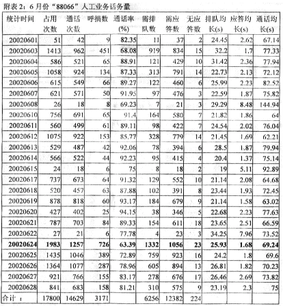 6月份"88066"人工業(yè)務(wù)話(huà)務(wù)量見(jiàn)附表2。
