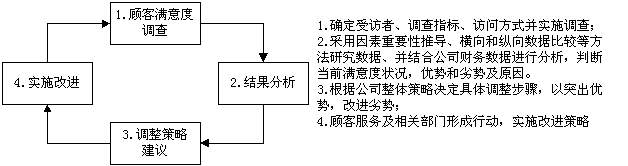 顧客滿意度調(diào)查和客戶投訴和建議處理系統(tǒng)、神秘顧客調(diào)查、流失客戶分析是當(dāng)前企業(yè)收集客戶意見的四種主要方法。其中,顧客滿意可以運(yùn)用幾種方法衡量。它可以通過詢問直接衡量:“請按下面的量度說出你對某服務(wù)的滿意程度:很不滿意、不太滿意、一般、比較滿意、很滿意”(直接報告滿意程度)。還可以要求受訪者評價他們期望一個什么樣的產(chǎn)品屬性,以及他們實際得到的是什么(引申出來的不滿意)。另外一種方法是要求受訪者列出他們在產(chǎn)品上發(fā)現(xiàn)的任何問題和他們能建議的任何改進(jìn)措施(問題分析)。最后,公司可以要求受訪者按產(chǎn)品各要素的重要性不同進(jìn)行排列,并對組織在每個要素上的表現(xiàn)作出評價(重要性/績效等級排列)。最后一種方法可以幫助公司了解它是否在一些重要的要素方面表現(xiàn)不佳,或在一些相對不重要的要素方面過于投入。而且,研究顯示,在收集有關(guān)顧客滿意的信息時,詢問顧客再次購買和再次推薦的問題,也是十分有價值的,它們共同構(gòu)成了顧客滿意度調(diào)查指標(biāo)。