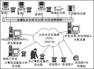 此方案使用后,以市為中心,可把周邊的各個縣、各個區(qū)聯成一個統一的148法律服務整體,各個縣、各個區(qū)的咨詢用戶只需要知道一個統一的148法律服務電話號碼,就可與最近的148法律服務臺接通進行法律咨詢。