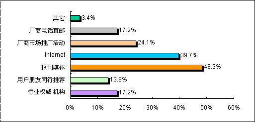 此次調查顯示,由于視頻會議系統(tǒng)的行業(yè)性相對較強,目前用戶在了解視頻終端會議系統(tǒng)產品時,報刊媒體、Internet、廠商推廣活動、廠商電話直郵和行業(yè)權威機構成為主要的信息來源渠道。值得注意的是網絡的普及使得更多的用戶也選擇Internet作為了解信息的重要途徑。但對各視頻會議系統(tǒng)的廠商而言,由于客戶群體相對龐大,分散區(qū)域較為廣泛,在作好直銷的同時,也應該加強渠道的建設,以更及時和準確地了解到用戶采購和招標的信息,同時也能夠降低銷售成本。