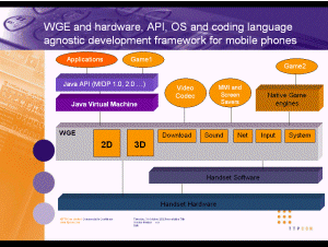 TTPcom開發(fā)的平臺加速解決方案,是通過名為"無線圖形引擎"(Wireless Graphics Engine,WGE)的開放式應(yīng)用編程接口(API),對手機(jī)設(shè)備上的所有圖形應(yīng)用進(jìn)行加速,其效果等同于個人計算機(jī)上的圖形加速卡。WGE可以加快建模和渲染速度,并提高圖形顯示的幀速率,以改善手機(jī)圖形處理的整體表現(xiàn),讓用戶充分體驗(yàn)到更出眾的系統(tǒng)性能。WGE的設(shè)計初衷旨在令A(yù)RM 7架構(gòu)手機(jī)(全球市場約有百分之七十二的手機(jī)均支持ARM 7處理器)的圖像性能,可以媲美任天堂公司推出的同樣基于ARM 7架構(gòu) 的 GameBoy掌上游戲機(jī)。2002年初,GameBoy的ITE游戲 "Hugo and the Evil Mirror"被成功引入至WGE支持設(shè)備,為入門級手機(jī)用戶提供了真正的GameBoy體驗(yàn),從而證明WGE完全可以達(dá)到其設(shè)計目標(biāo)。