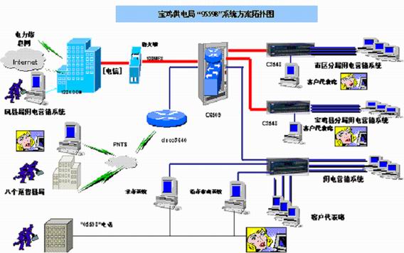 、 利用現(xiàn)有的計算機網絡基礎實現(xiàn)市區(qū)供電分局、寶雞縣供電分局、鳳縣供電分局三個供電分局與局客戶服務中心的信息聯(lián)結;