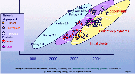 2003年5月底,世界上已經(jīng)有45個業(yè)務提供商正在使用Parlay 3.0或正準備采用Parlay技術。