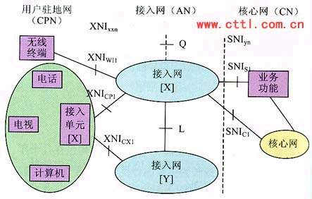在圖中,XNI為接入網(wǎng)與用戶駐地網(wǎng)的接口,SNI為接入網(wǎng)到核心網(wǎng)之間的接口,L參考點為不同接入網(wǎng)之間的接口參考點。下一代的接入網(wǎng)應綜合利用多種手段在XNI和SNI之間提供有質(zhì)量保證的基于分組的寬帶的傳送承載能力。下一代網(wǎng)絡的接入網(wǎng)應具有以下特點: