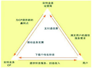 如今,韓國(guó)的彩鈴業(yè)務(wù)已遍地開花,超過50%的手機(jī)用戶在使用彩鈴服務(wù),運(yùn)營(yíng)商因此每月能獲得1500萬美元的收益。小彩鈴喚來了大市場(chǎng)。個(gè)人用戶無需購(gòu)買昂貴的終端就可通過彩鈴業(yè)務(wù)向外界傳遞個(gè)性和情感。商業(yè)用戶將回鈴音設(shè)置成廣告/宣傳語,使客戶在與企業(yè)員工交流的同時(shí)接收企業(yè)的相關(guān)信息,例如企業(yè)文化、產(chǎn)品、銷售信息等,直接或間接地增加了企業(yè)的市場(chǎng)機(jī)會(huì)。彩鈴業(yè)務(wù)為運(yùn)營(yíng)商帶來了直接的經(jīng)濟(jì)收益,也帶來了特征用戶群,在語音增值業(yè)務(wù)中實(shí)現(xiàn)了產(chǎn)業(yè)鏈合作。同時(shí),運(yùn)營(yíng)商通過對(duì)特征用戶群的研究分析發(fā)現(xiàn)了未來商機(jī),并通過在語音增值業(yè)務(wù)產(chǎn)業(yè)鏈中引入ICP/ISP達(dá)到了資源的有效利用。