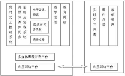 實時教學在一般情況下的實現(xiàn)過程如下: 實時教學開始后,通過攝像頭和麥克風現(xiàn)場采集教師講課的視頻和音頻作為編碼器輸入,經(jīng)編碼計算機編碼為媒體流,并發(fā)送到流媒體服務器,然后服務器啟動服務模塊,通過多播發(fā)布媒體流,學生用客戶端播放器接受和播放媒體流。為了提供交互性,在課件制作中可以相應地增加所需的功能。例如在課堂上回答問題或討論問題。教師控制發(fā)言權(quán),得到教師的允許后,學生可以回答問題或同其他同學交流來討論問題。這樣遠程面授就可以成為現(xiàn)實了,學生只需要一臺PC、一個Modem就可以坐在家里聽課并實時地和老師交互。