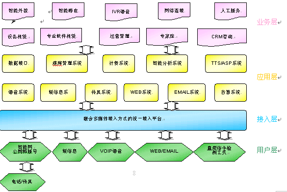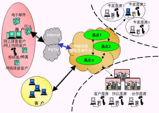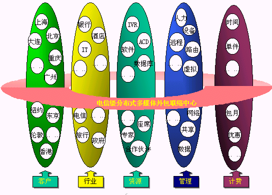 電信運營商提供的用戶、客戶、電信公司的統(tǒng)一的聯(lián)系平臺,各類客戶通過使用聯(lián)系平臺,向其用戶提供方便的、不受時間、地域和媒體的限制的"3A"級聯(lián)絡服務,用戶、客戶、電信平臺間的聯(lián)絡能得到有效路由、管理、品質保障;聯(lián)絡中心通過將分布在各地、各種媒體、各種形式的資源整合在一起實現(xiàn)客戶服務增值,創(chuàng)造無限商機,有效提升客戶聯(lián)絡中心的價值,使用戶得到最貼身的、個性化的、專業(yè)的服務,為客戶提供成本更低、資源更豐富、服務更專業(yè)、具備強大商業(yè)智能的產(chǎn)品營銷及服務、電信運營商則開發(fā)大量的增值服務、產(chǎn)生更多的利潤增長空間、更多忠實的客戶,實現(xiàn)三方面共同成功。