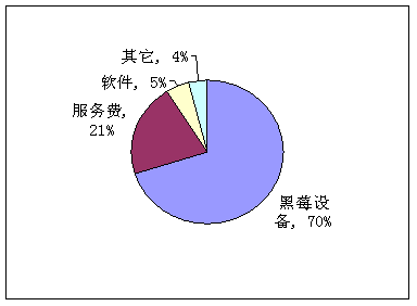 加拿大RIM公司是最早推出移動(dòng)PushE-mail業(yè)務(wù)的企業(yè),黑莓業(yè)務(wù)主要是以該公司為核心,也是目前最成功的移動(dòng)PushE-mail業(yè)務(wù)。該公司幾乎控制著圍繞黑莓業(yè)務(wù)的所有產(chǎn)品,包括終端、服務(wù)器、客戶端軟件、解決方案等,并且吸引了一批獨(dú)立軟件公司開發(fā)基于黑莓的各種軟件產(chǎn)品,如即時(shí)通信軟件、移動(dòng)營(yíng)銷軟件、移動(dòng)CRM軟件等,RIM公司向這些軟件開發(fā)公司收取專利費(fèi)用。另外,在業(yè)務(wù)方面,由于RIM公司控制NOC的運(yùn)維,因此運(yùn)營(yíng)商還需要向RIM公司支付服務(wù)費(fèi)。圖2為RIM公司2006財(cái)年業(yè)務(wù)收入結(jié)構(gòu)。
