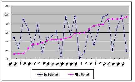 我們通過分析,圖3顯示,員工的培訓成績和其工作績效是無關(guān)的,這說明培訓是無效的。無效的原因也許是由于培訓內(nèi)容不合理或培訓組織實施不善等原因,總之培訓是無效的,需要改進。