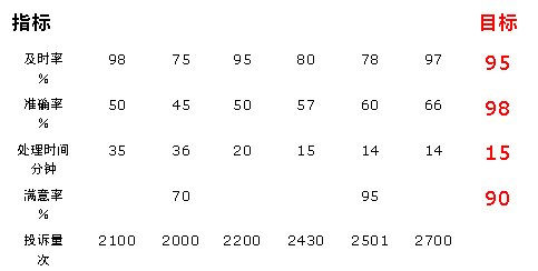 從準確率的角度來看:各月指標值都低于目標值,處于沒有達標狀態(tài),但從1-6月各月準確率的變化情況來看,其處于一個持續(xù)改進狀態(tài)(連續(xù)三點以上的上升可認為是持續(xù)改進),即說明通過管理控制,該指標得到了持續(xù)改善。因此,對準確率的管理是有效的,雖然目前還沒有達到目標值。