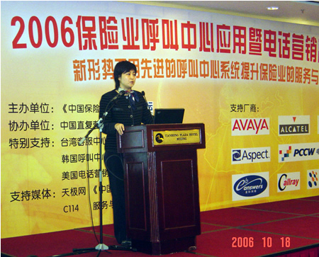 。。2006年10月18日,2006保險(xiǎn)業(yè)呼叫中心應(yīng)用暨電話營銷高峰研討會(huì)在北京天鴻科園大酒店隆重召開,以下是K1主題演講實(shí)錄: