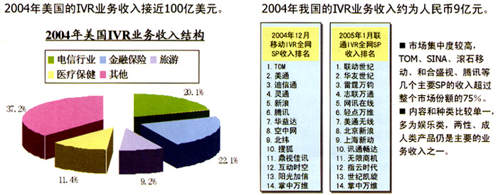 總之,借鑒國際經(jīng)驗(yàn),考慮本國實(shí)情,筆者認(rèn)為,今后國內(nèi)IVR的業(yè)務(wù)結(jié)構(gòu)將會(huì)逐步在發(fā)展中得到改善,雖然說針對個(gè)人提供的語音娛樂類、點(diǎn)播類業(yè)務(wù)在近期仍會(huì)占主體,但信息咨詢類、行業(yè)應(yīng)用類和數(shù)據(jù)類業(yè)務(wù)的比例將會(huì)逐步提高,而形式、內(nèi)容相對空泛的游戲答題類業(yè)務(wù)在經(jīng)過近兩年的繁榮期后,占比和規(guī)模都將會(huì)逐步回落到一個(gè)穩(wěn)定的水平。