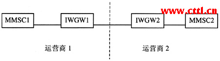 圖2 點對點多媒體消息業(yè)務網(wǎng)間互聯(lián)網(wǎng)絡(luò)結(jié)構(gòu)示意圖
