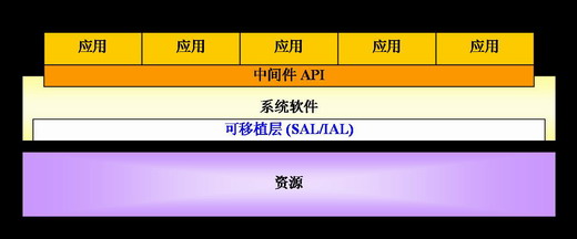 應(yīng)用層不直接調(diào)用和操作資源,而是由系統(tǒng)軟件層對資源進行抽象和封裝,提供給應(yīng)用層調(diào)用。這個中間層分離了硬件和應(yīng)用層,使應(yīng)用層具有非常強的可移植性。系統(tǒng)軟件層主要包括中間件核心層模塊和可移植層模塊。