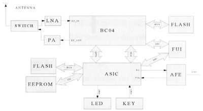 其中,BC04支持最大4個(gè)活動(dòng)連接(包括耳機(jī)),同時(shí)支持兩路SCO語音,所以語音通過PCM和ASIC PCM相接可以有多路被送到模擬端,從而實(shí)現(xiàn)3方通話。ASIC部分實(shí)現(xiàn)PCM語音數(shù)據(jù)與模擬語音信號(hào)的相互轉(zhuǎn)換,通過發(fā)送和接收PSTN信令,負(fù)責(zé)對(duì)人機(jī)界面的控制。它通過GPIO(General