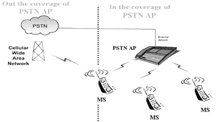 室外環(huán)境下,即脫離藍(lán)牙網(wǎng)絡(luò)覆蓋范圍,CTP MS可以通過蜂窩網(wǎng)絡(luò)接打電話。當(dāng)CTP MS從室外進(jìn)入到藍(lán)牙網(wǎng)絡(luò)覆蓋區(qū),不需要人工干預(yù),MS可以自動(dòng)通過AP進(jìn)行注冊(cè),并將蜂窩網(wǎng)絡(luò)的電話轉(zhuǎn)移到藍(lán)牙語音網(wǎng)關(guān)所連接的線路上,撥打PSTN網(wǎng)絡(luò)電話。