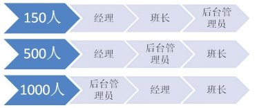 當(dāng)員工人數(shù)到達(dá)500人的時(shí)候,班長(zhǎng)往往有30位左右。很多經(jīng)理已經(jīng)不能夠?qū)γ课话嚅L(zhǎng)有足夠的了解,更不要說去認(rèn)識(shí)大部分員工。這個(gè)時(shí)候,經(jīng)理對(duì)班長(zhǎng)的比例過寬,需要強(qiáng)化后臺(tái)管理員的角色。比如排班、績(jī)效、質(zhì)量管理(而不僅是評(píng)估)、信息分析(數(shù)據(jù)和報(bào)告)、行政、培訓(xùn)等工作中,這些管理輔助角色都在逐漸強(qiáng)化。而每一個(gè)后臺(tái)管理者可能成了經(jīng)理的直接下屬,他們起草的流程和制度,來由經(jīng)理決策。某種程度上說,他們比班長(zhǎng)的影響力更大,因?yàn)榘嚅L(zhǎng)還是影響著12-20人。有時(shí)候后臺(tái)管理員也決定了班長(zhǎng)的時(shí)間精力分配,那是班長(zhǎng)最寶貴的資源。那么誰是管理者呢?首先是經(jīng)理,其次是后臺(tái)管理員,最后才是班長(zhǎng)。