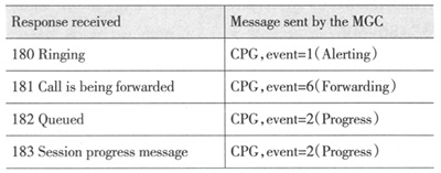 (6)發(fā)出ACM消息后,所有的臨時(shí)消息將被翻譯成ISUP CPG消息;
