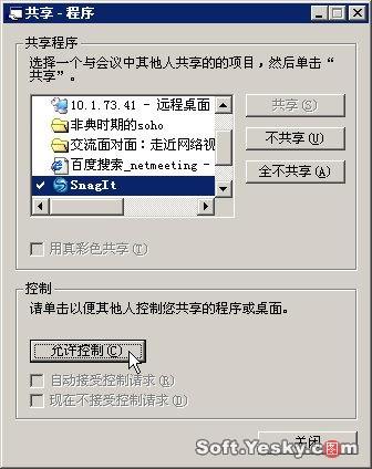 然后在客戶端Netmeeting中只須在其窗口出現(xiàn)的共享程序窗口中單擊“控制”/“請求控制權(quán)”并經(jīng)授權(quán)后即可以操控主機上的應用程序了。