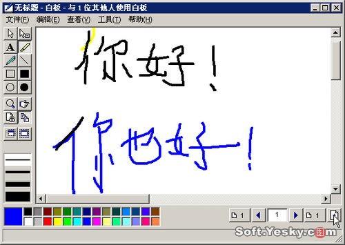 Netmeeting界面下方有四個按鈕,分別對應了“共享”、“聊天”、“白板”和“傳送文件”四項主要功能(這四項功能需要在會議屬性中啟用,否則在會議中處于不可用狀態(tài))。