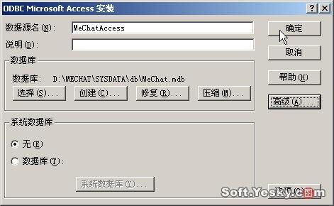 為使Mechat系統(tǒng)具有較高的運行效率,我們將其添加數(shù)據(jù)庫支持,單擊“開始”/“設置”/“控制面板”,選擇“治理工具”/“數(shù)據(jù)源(ODBC)”,切換至“系統(tǒng)DSN”,單擊“添加”按鈕啟動ODBC數(shù)據(jù)源添加向?qū),選擇“MicrosoftAccessDriver(*、mdb)”,然后在DSN屬性設置窗口設置數(shù)據(jù)源名稱為“MeChatAccess”,選擇數(shù)據(jù)庫文件為D:\MeChat\SysData\db目錄下的MeChat、mdb(如圖23)。設置完畢,單擊“確定”退出。