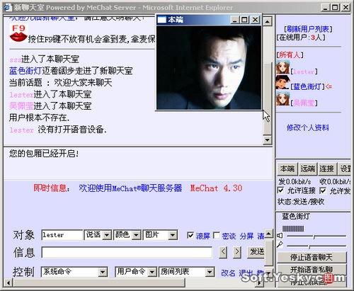 MeChat是由廣州和韻計算機有限公司開發(fā)的視頻聊天服務器。(點這里下載)與一般的采用ASP或CGI的語音聊天室不同,Mechat內(nèi)核由C