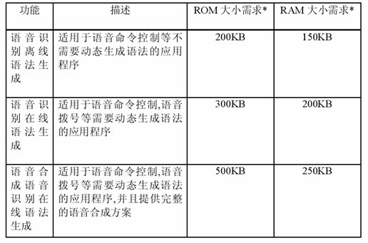 表中所列的RAM和ROM的空間需求是一個近似數(shù)字