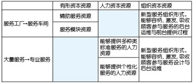 本質(zhì)上講,電信服務(wù)產(chǎn)品的四類服務(wù)都是在此二維機理的作用下生成的,服務(wù)的內(nèi)容映射著企業(yè)的有形資本資源和人力資本資源,服務(wù)的過程映射著企業(yè)的組織資本資源,從一種服務(wù)向另一種服務(wù)躍遷,不僅僅是服務(wù)過程和服務(wù)內(nèi)容的重新整合,更重要的是需要彌補相應(yīng)的資源,才能達(dá)到服務(wù)生成的結(jié)果,否則,躍遷就不會成功。