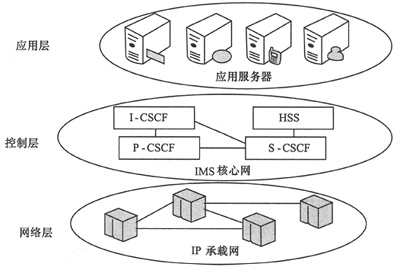 隨著通信技術(shù)不斷發(fā)展,通信網(wǎng)絡(luò)寬帶化成為一個(gè)明顯的發(fā)展趨勢(shì)。為了適應(yīng)這個(gè)發(fā)展趨勢(shì),向用戶提供更加豐富的移動(dòng)業(yè)務(wù)。3G移動(dòng)通信標(biāo)準(zhǔn)組織(3GPP)在R5版本中提出了IP多媒體子系統(tǒng)(IMS)的技術(shù)架構(gòu)[1],其核心思想是在3G網(wǎng)絡(luò)中引入支持IP多媒體業(yè)務(wù)的子系統(tǒng)。IMS的技術(shù)特點(diǎn)在協(xié)議層面上來(lái)說。就是控制和應(yīng)用分離,如圖1所示?刂茖硬捎脮(huì)話初始化協(xié)議(SIP),應(yīng)用層支持各類IP以上的應(yīng)用層協(xié)議,如RTP、FTP、SMTP等。在網(wǎng)絡(luò)層面上來(lái)說,IMS采用承載網(wǎng)和控制網(wǎng)分離的原則。由于上述技術(shù)特點(diǎn),在IMS網(wǎng)絡(luò)上推出多媒體業(yè)務(wù)比3G
