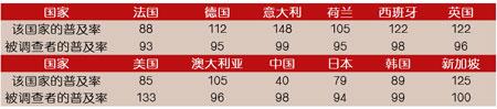 調(diào)查結(jié)果顯示,超過(guò)50%的受訪者會(huì)在家里使用手機(jī)打電話,在中國(guó)和韓國(guó),這一比例甚至高達(dá)90%。在家使用手機(jī)上網(wǎng)的情況剛好相反,大部分的被調(diào)查者表示他們不會(huì)在家使用手機(jī)上網(wǎng),相比之下,中國(guó)和日本用手機(jī)在家上網(wǎng)的人數(shù)較其它國(guó)家多一些。