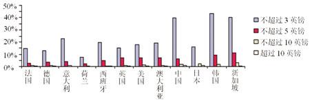 在那些少數(shù)愿意購(gòu)買手機(jī)電視和電影大片的被調(diào)查者中,大部分人愿意每月支付不超過(guò)3英鎊的費(fèi)用。其中,中國(guó)、韓國(guó)、新加坡的支付意愿較高,歐洲的意大利其次,其23%的被調(diào)查者也表示愿意每月支付不超過(guò)3英鎊的費(fèi)用。愿意每月支付3英鎊以上的用戶非常少,在韓國(guó)、日本、新加坡這樣的國(guó)家,也只有不到11%的人表示愿意每月支付不超過(guò)5英鎊的費(fèi)用。(見圖6)