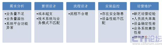 要領(lǐng)設(shè)計(jì)階段風(fēng)險(xiǎn):在該階段,企業(yè)將決定呼叫中心的建設(shè)規(guī)模、技術(shù)設(shè)備、組織架構(gòu)及運(yùn)營(yíng)模式等一系列環(huán)節(jié)。此過(guò)程中,最容易且是最嚴(yán)重的風(fēng)險(xiǎn)在于成本估算的差異和技術(shù)系統(tǒng)與業(yè)務(wù)模式的不匹配。多數(shù)企業(yè)在呼叫中心建設(shè)成本估算時(shí)由于經(jīng)驗(yàn)的缺乏無(wú)法全面預(yù)測(cè)建設(shè)成本,特別是對(duì)運(yùn)營(yíng)費(fèi)用的把握常常相差數(shù)倍。因此,實(shí)際建設(shè)成本過(guò)分超出預(yù)算成為困擾項(xiàng)目執(zhí)行者的一大難題。這就使得企業(yè)對(duì)呼叫中心的投入猶如一個(gè)無(wú)底洞,一投再投,嚴(yán)重影響了企業(yè)資金鏈的正常運(yùn)轉(zhuǎn),也為呼叫中心的“成本”角色加重了色彩。此外,很多公司或者系統(tǒng)集成商因?yàn)槌跏纪度氤杀、建設(shè)經(jīng)驗(yàn)或者運(yùn)營(yíng)經(jīng)驗(yàn)等方面的限制,在呼叫中心建設(shè)初期很重視技術(shù)平臺(tái)的建設(shè),但忽視了運(yùn)營(yíng)思想在系統(tǒng)方案中的體現(xiàn),在系統(tǒng)建成后,再去完善運(yùn)營(yíng)系統(tǒng),這樣極大地增加了呼叫中心的運(yùn)營(yíng)和管理成本,也影響到管理效率。
