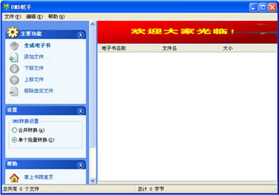 也有不少用戶利用UMD轉(zhuǎn)換工具將電子書轉(zhuǎn)換成UMD格式,但市場上的UMD轉(zhuǎn)換工具都不支持批量轉(zhuǎn)換功能,比如筆者最近想好好復(fù)習(xí)下英語。想將大量的英語資料制成手機(jī)電子書,在上下班坐車的時候?qū)W習(xí),使用普通的轉(zhuǎn)換器就會耗費許多時間。經(jīng)過筆者不懈的上網(wǎng)挖掘,終于發(fā)現(xiàn)了一個好東東。掌上書院推出了首款UMD手機(jī)電子書批量制作工具UMD舵手1.0beta,據(jù)介紹,UMD舵手是目前唯一款UMD手機(jī)電子書批量制作工具,最多可一次性同時轉(zhuǎn)換300本以上的圖書,為喜愛自己動手制作手機(jī)電子書的用戶提供了極大的方便,DIY個屬于自己的手機(jī)圖書館不再是夢想了。