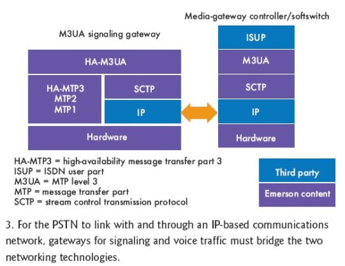網(wǎng)關(guān)模塊的硬件設(shè)計(jì)必須提供PSTN接口,這些端口通常要處理每個(gè)SS7鏈路上64kbps數(shù)據(jù)速率的E1/T1/J1 PSTN信號(hào),或者成組使用時(shí)的高速鏈路(透明和ATM鏈路)。網(wǎng)關(guān)還內(nèi)置能夠運(yùn)行PSTN與IP網(wǎng)絡(luò)堆棧的處理器和至少兩個(gè)IP端口,如千兆以太網(wǎng)連接,因此它們有冗余鏈路連接到IP網(wǎng)絡(luò)。雖然這看起來(lái)簡(jiǎn)單,但獨(dú)立網(wǎng)關(guān)模塊的設(shè)計(jì)可能是一個(gè)很大的挑戰(zhàn)。