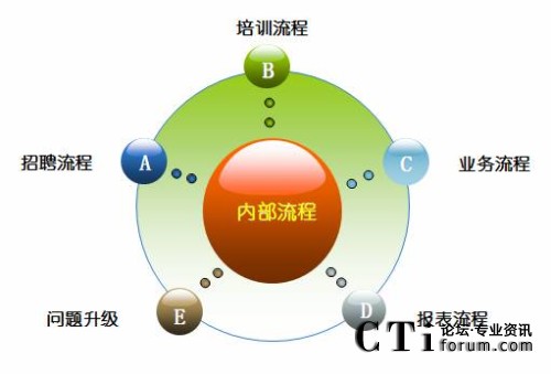 呼叫中心的流程按其用途和作用點(diǎn)不,又分為內(nèi)部流程和外部流程兩部分,外部流程主要是指和相關(guān)部門(mén)間的流程,而內(nèi)部流程又包括有: