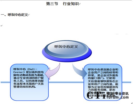 呼叫中心的業(yè)務手冊作為呼叫中心知識管理中的重要組成部分,在承載、存儲、傳遞、更新業(yè)務知識信息,以及知識信息的歸類整理方面起著至關重要的作用,是呼叫中心顯性知識管理的重要工具和組成部分,此部分內容詳見拙作:http://www.skybaby168.com/factory/outsourcing/www.arvatoservices.com.cn/arvatoservices09_0501.htm。