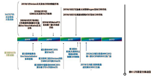 作為通信設(shè)備制造商領(lǐng)頭羊的愛(ài)立信正與整個(gè)行業(yè)一起積極推進(jìn)LTE語(yǔ)音解決方案全面測(cè)試和商業(yè)部署。從2009年倡議建立后來(lái)被GSMA定義為VoLTE對(duì)應(yīng)要求的“One Voice Initiative”到2010/2011年多次在各大通信展上演示VoLTE呼叫并幫助歐洲及北美運(yùn)營(yíng)商成功部署CSFB解決方案,再到2012年在巴塞羅那通信展惟一現(xiàn)場(chǎng)演示CSFB、SRVCC解決方案(見(jiàn)圖4),對(duì)于LTE語(yǔ)音解決方案的穩(wěn)健發(fā)展,愛(ài)立信和整個(gè)通信產(chǎn)業(yè)鏈一樣充滿(mǎn)信心。