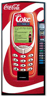 在澳大利亞,澳大利亞電訊和可口可樂(lè)公司聯(lián)合發(fā)布了一項(xiàng)新業(yè)務(wù)的試運(yùn)營(yíng):“撥打可口可樂(lè)”。這項(xiàng)新業(yè)務(wù)使該公司的后付費(fèi)移動(dòng)電話客戶可以使用他們的GSM移動(dòng)電話,在可口可樂(lè)售貨機(jī)上購(gòu)買他們喜愛(ài)的飲料。這次試驗(yàn)在悉尼中央車站的17臺(tái)可口可樂(lè)售貨機(jī)上進(jìn)行。