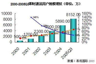 2000-2005第三季度即時(shí)通訊用戶(hù)規(guī),F(xiàn)狀圖