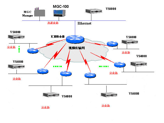 該項目是世界銀行支援中國西北發(fā)改辦的視頻會議系統(tǒng),主要是用于西部各政府機關(guān)和大學之間進行視頻會議和遠程培訓之用。初期的項目規(guī)模為11個會場,組網(wǎng)方式為IP組網(wǎng)方式。