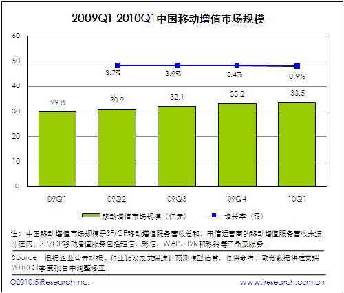 電信運營商計費政策重大調(diào)整對整個移動增值市場產(chǎn)生巨大影響力,2010Q1移動增值市場規(guī)模為33.5億,與09Q1基本持平。電信運營商實施計費通道的強力治理措施,對產(chǎn)品線以WAP計費為主的企業(yè)造成嚴(yán)重生存壓力,與此同時采用短信計費的移動增值產(chǎn)品營銷也受到不同程度影響。實現(xiàn)由單一移動增值業(yè)務(wù)向移動互聯(lián)網(wǎng)服務(wù)進(jìn)行戰(zhàn)略轉(zhuǎn)型,是SP企業(yè)戰(zhàn)略發(fā)展的實踐路徑。艾瑞認(rèn)為電信運營商實施全新的合作伙伴計費政策,將重新構(gòu)建移動增值市場秩序。