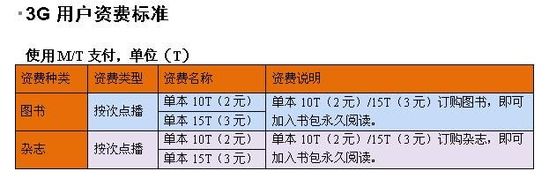據(jù)了解,中國聯(lián)通手機閱讀業(yè)務(wù)只針對聯(lián)通網(wǎng)內(nèi)手機用戶,采用按次點播(按本訂購)的資費標(biāo)準(zhǔn)。同時,2G用戶和3G用戶采用不同的支付方式,2G用戶使用手機話費支付,3G用戶使用M/T支付。