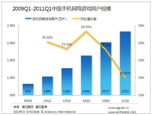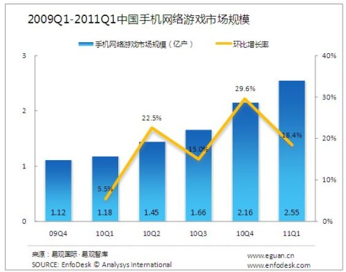 2011年第1季度中國手機網絡游戲市場規(guī)模達2.55億