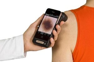 Handyscope可提供皮膚的放大、偏振視圖,將皮膚表面顯微鏡與移動(dòng)性和通訊技術(shù)結(jié)合起來。醫(yī)生可用它來采集和保存痣的圖像,用于皮膚癌的檢查。與傳統(tǒng)的手持皮膚鏡檢查相反,醫(yī)生可遠(yuǎn)程檢查皮膚,在屏幕上對痣進(jìn)行評估。