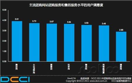 圖:DCCI主流團(tuán)購網(wǎng)站服務(wù)和售后水平的用戶滿意度