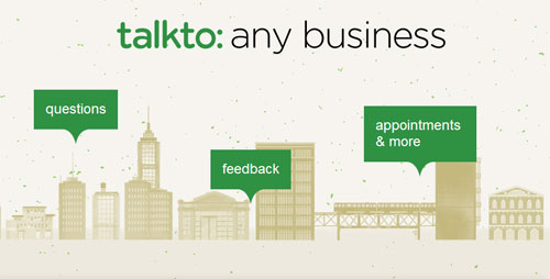 這一切是怎樣實現(xiàn)的呢?TalkTo通過短信與商家溝通。用戶可以通過web應(yīng)用在TalkTo目錄中搜索需要的服務(wù),輸入商家的詳細地址或者大概位置,TalkTo就可以確保商家看到用戶的短信。TalkTo用戶可以向商家提出問題和意見,或直接預(yù)定服務(wù)!斑@一切就像和朋友發(fā)短信一樣簡單。”