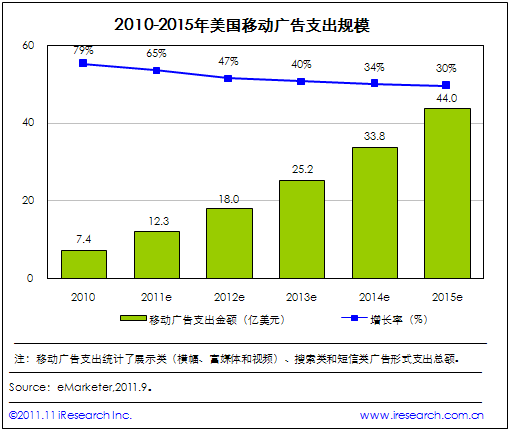 艾瑞:2011年美國移動(dòng)廣告支出規(guī)模將達(dá)12.3億美元