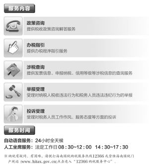 為及時響應納稅人的要求維護納稅人的權(quán)益,海南省國家稅務局于2003年開通12366納稅服務熱線,2008年5月12日正式成立12366納稅服務呼叫中心,在省國稅局設立熱線坐席,專門為納稅人解答涉稅難題。