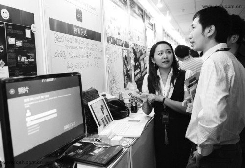 圖為:會議期間,與會者正在了解移動互聯(lián)技術(shù)。
